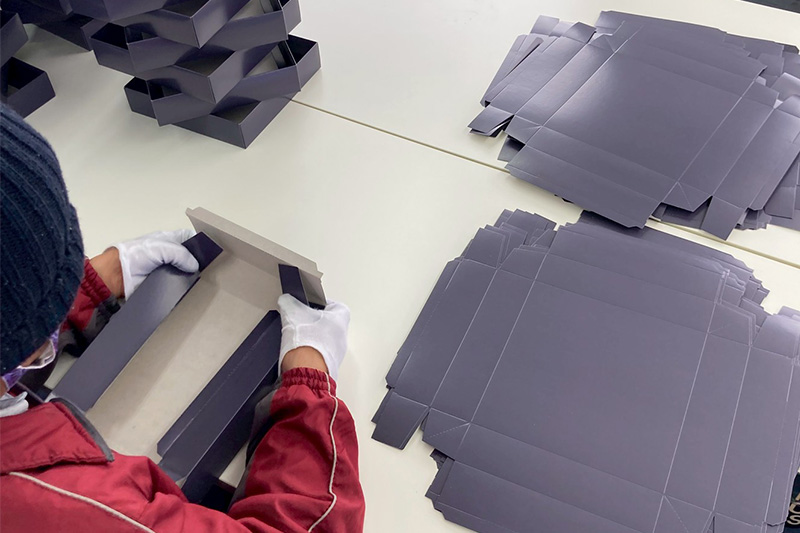 サイレントフットでは活動の一環として「容器等のテープ貼り」作業を行っています。箱や容器にテープを貼って仕上げるシンプルなお仕事で、丁寧さや集中力を活かせる作業です。